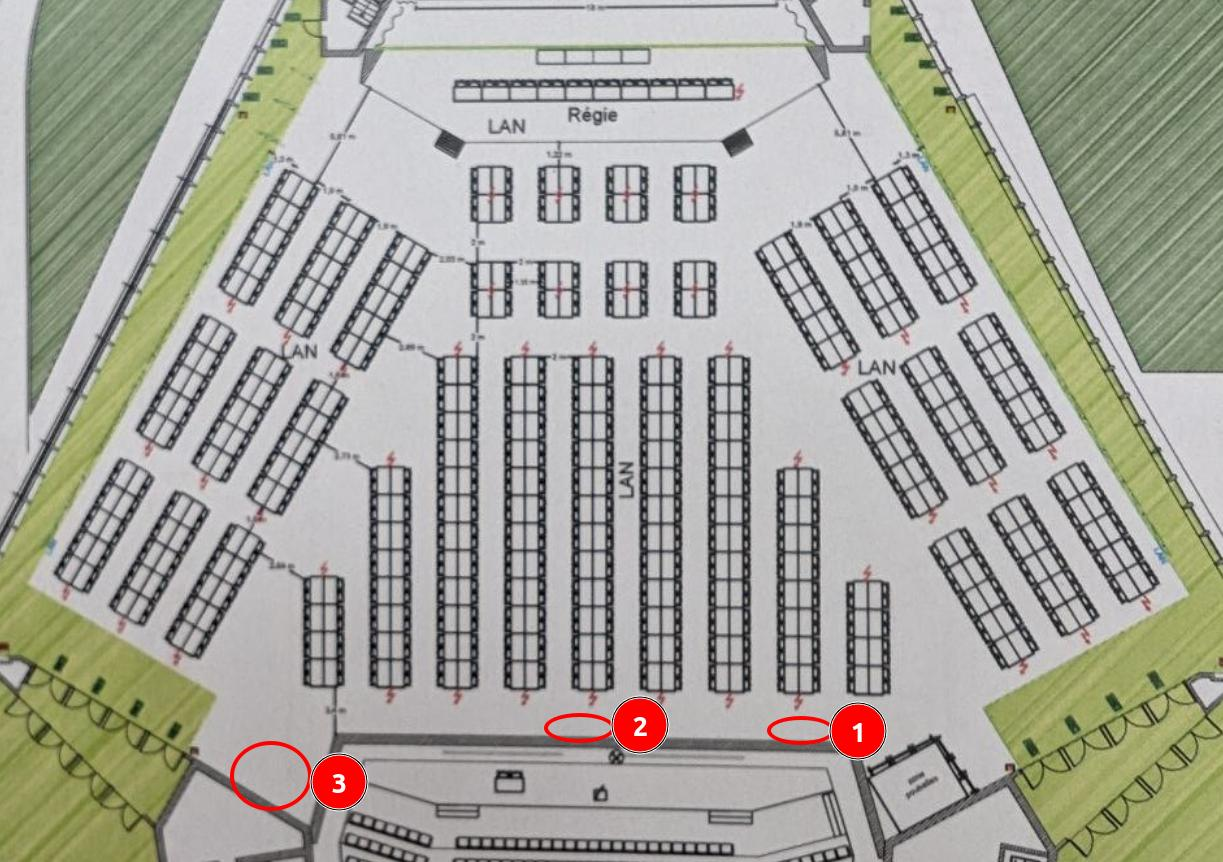 Here’s the map provided in the challenge statement. It represents the room where the CTF takes place. You can see three red circles, each representing the starting point of the three parts necessary to solve the box. Each part can be solved independently of the others.