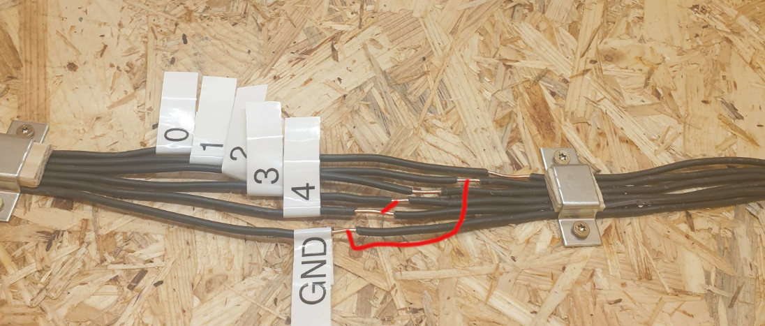 To transition from False to True, you need to bridge it with another wire that is in a True state. To transition from True to False, you must bridge it with GND. Therefore, to obtain 25, you have to add two bridges: one between 3 and 4, and one between 1 and GND.To do this, we had paper clips at our disposal on the table