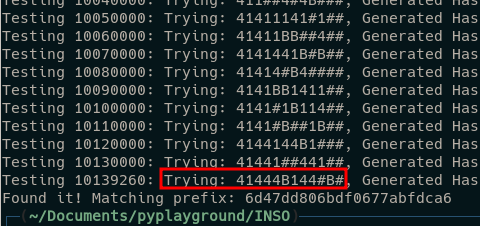 print(f"Testing {print_counter}: Trying: {trying}, Generated Hash: {current_hex}")