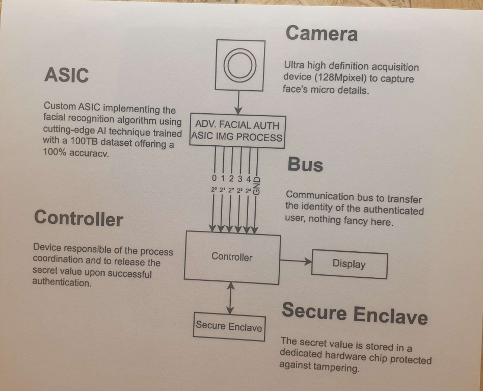 Once the third part of the wooden box is open, we can see two things: documentation explaining the operation of the facial recognition mechanism and the wires connecting the camera to the controller